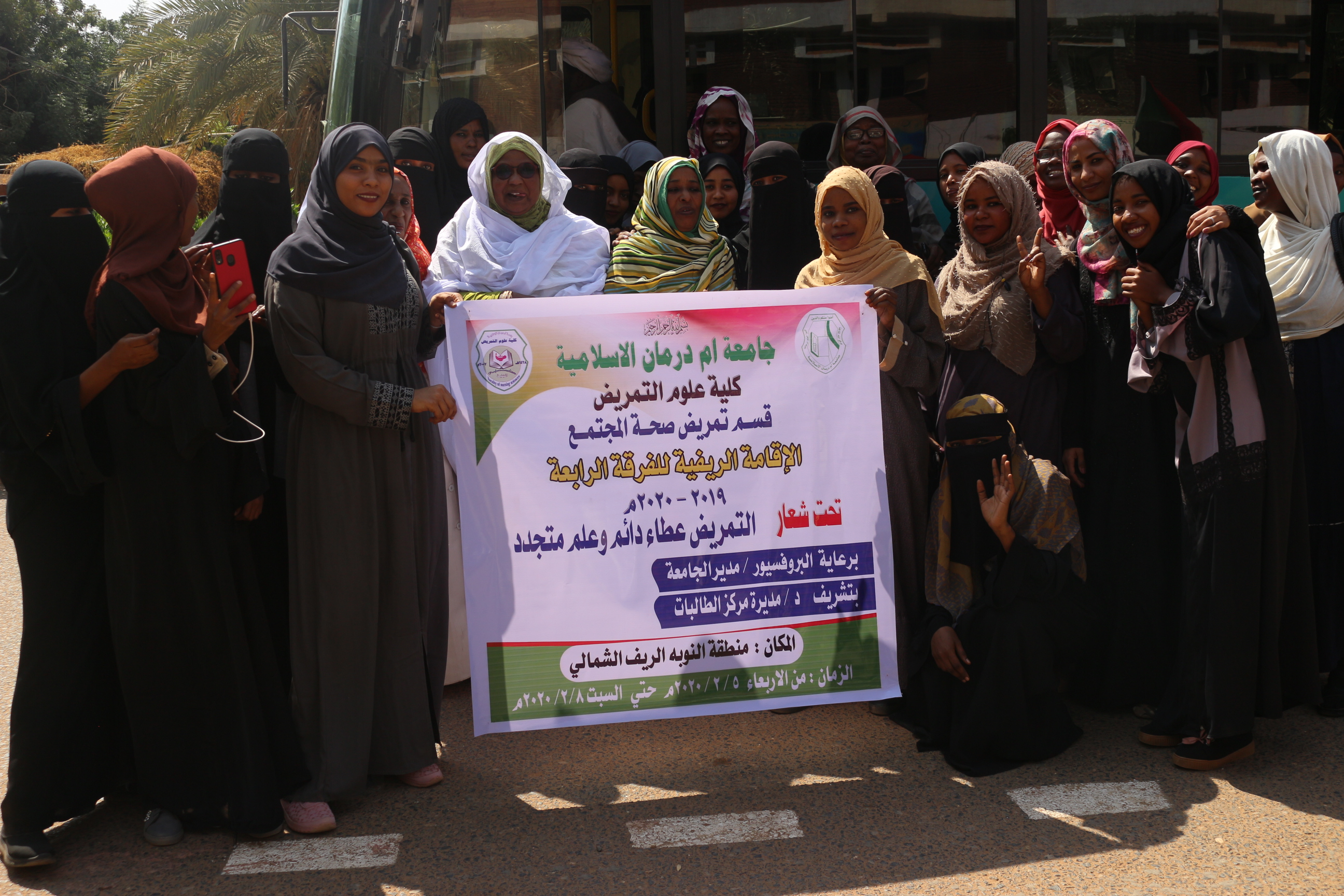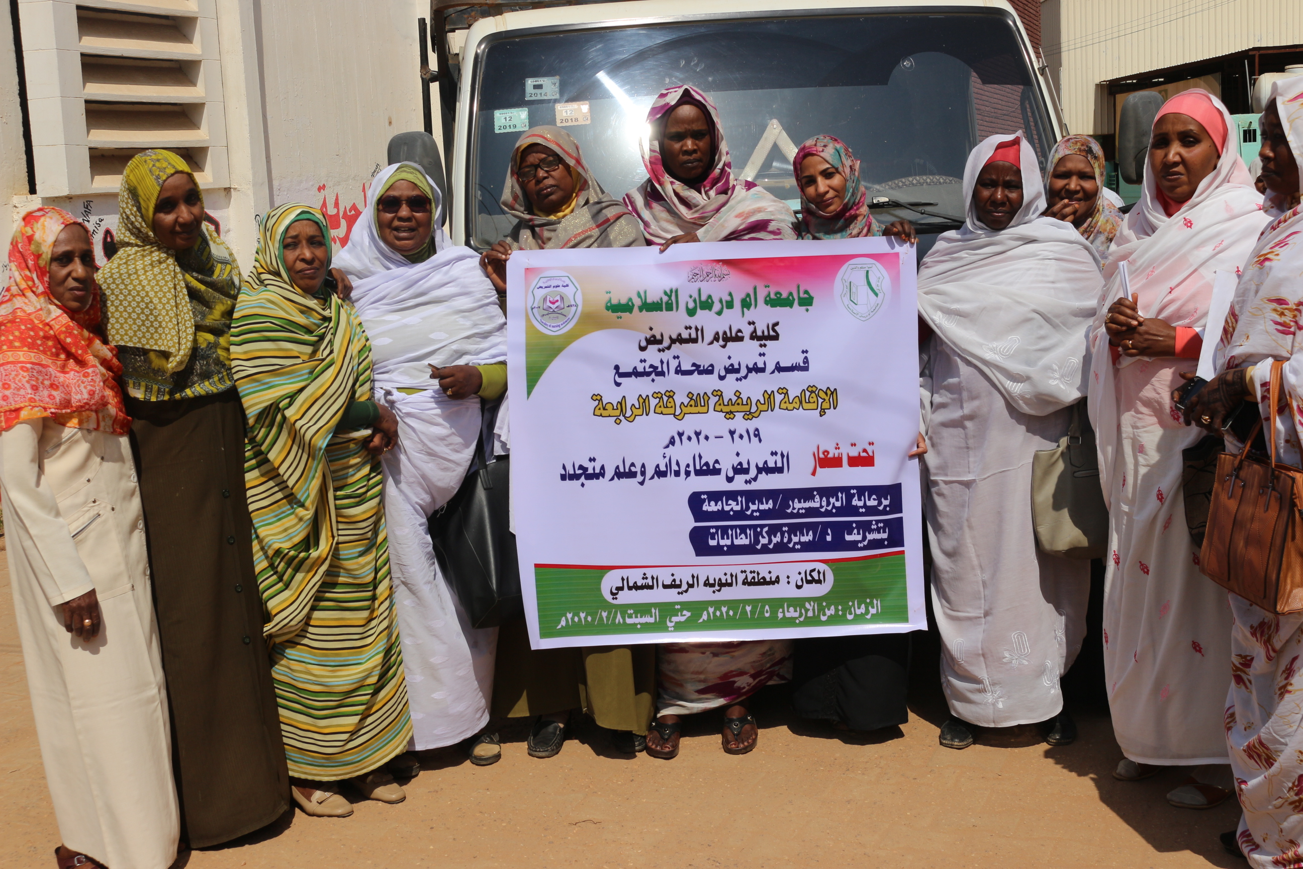 أقام قسم تمريض صحة المجتمع -كلية علوم التمريض -جامعة أم درمان الإسلامية فعاليات الإقامة الريفية للدفعة الخامسة بمنطقة النوبة الريف الشمالي لأم درمان يوم الاربعاء ٥ فبراير ٢٠٢٠ تشتمل الإقامة على عدة مناشط خدمية وتعتبر من اهم مقررات قسم تمريض صحة المجتمع سيكون ختام الإقامة الريفية يوم السبت الموافق ٨ فبراير ٢٠٢٠ بإصحاح البيئة واليوم العلاجي والدعوة عامة